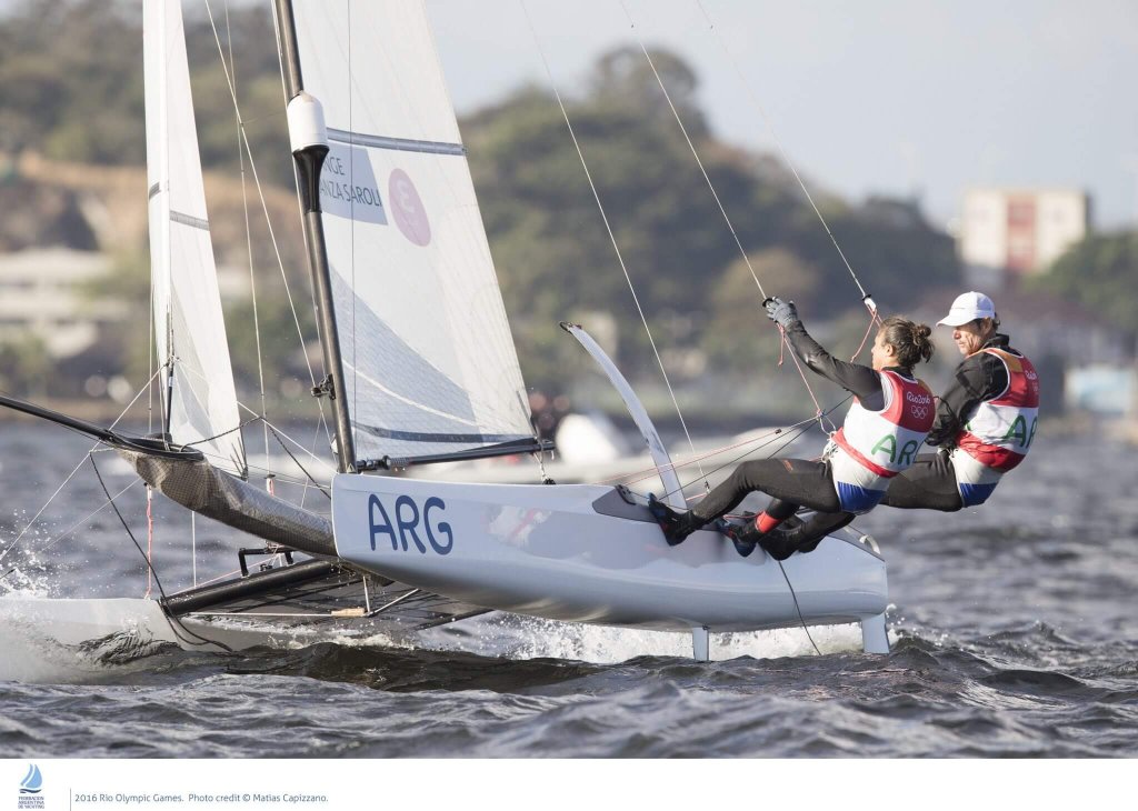 En la cuarta jornada de regatas en los Juegos Olímpicos Río Janeiro 2016, Santiago Lange y Cecilia Carranza van quintos en Nacra 17, sumando 36 unidades por los puestos 13 ° (descartado) 2°, 11° y 6° ° en las cuatro regatas corridas hoy. Los punteros son los australianos Jason Watherhouse y Lisa Darmanin, con 17 puntos.