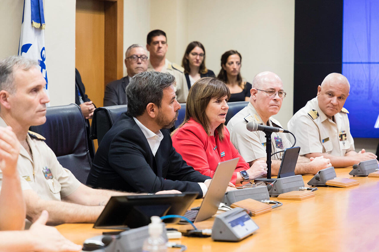 El anuncio se realizó en el Edificio Guardacostas de la Prefectura Naval Argentina, donde estuvo acompañada por el secretario de Seguridad Vicente Ventura Barreiro y por el prefecto nacional naval, Guillermo Giménez Pérez, el subprefecto nacional naval Alejandro Annichini, el director general de Seguridad Marítima y Portuaria y director de Policía de Seguridad de la Navegación y de Protección Ambiental Carlos Salaburu, el secretario general y director de Planeamiento Marcelo del Giorgio, el prefecto mayor Fernando Dos Santos y el prefecto principal Jorge Soto.